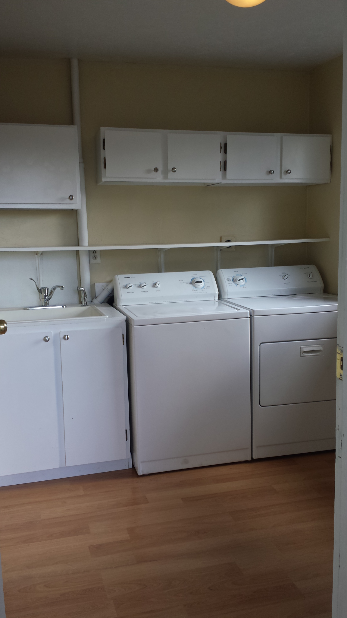 Separate Washroom with washer and dryer with a large tub sink.